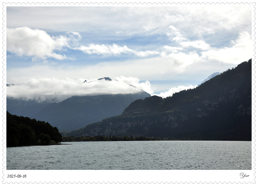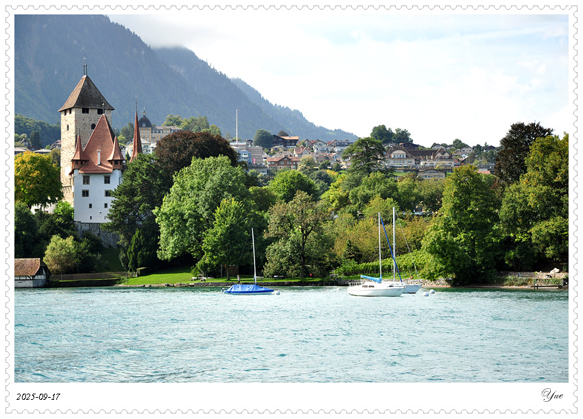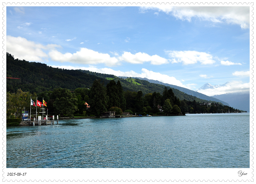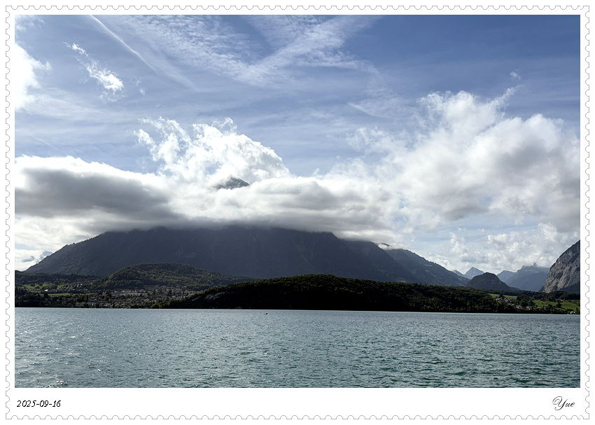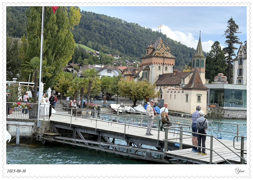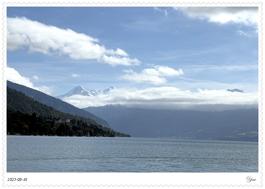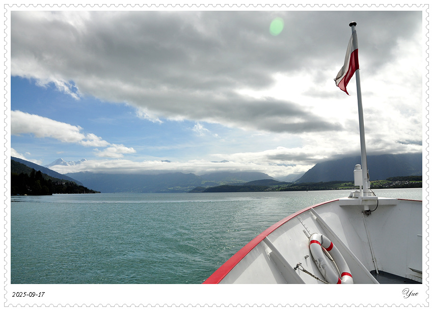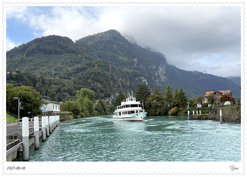 2025年9月16, 文根第三日,多云。 上午在山间步道走了一小段后,乘火车自文根Wengen – Lauterbrunnen- Interlaken West, 转乘11:10am最早的一班轮渡穿过图恩湖Thunersee (Lake Thun)到小镇图恩 Thun,再转火车约2点多到首都伯尔尼Bern,傍晚回程约5点多在图恩Thun下车与瑞士女友相聚。