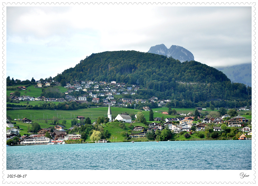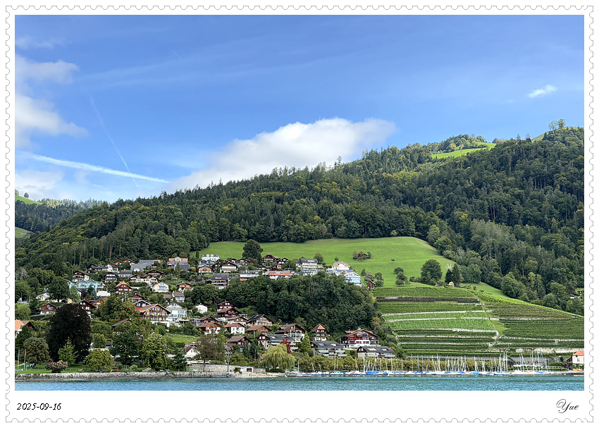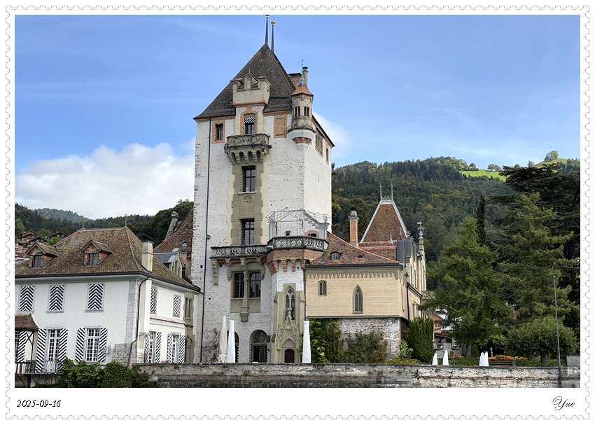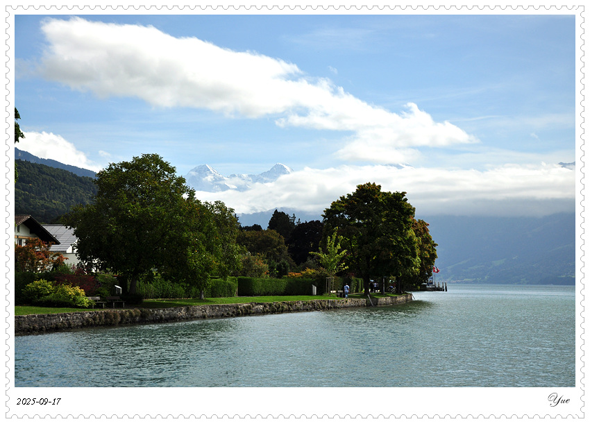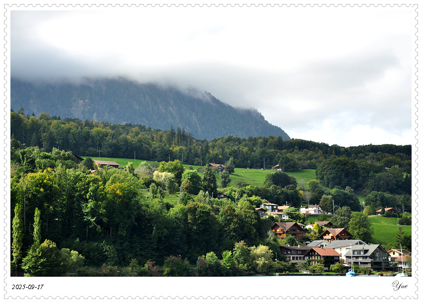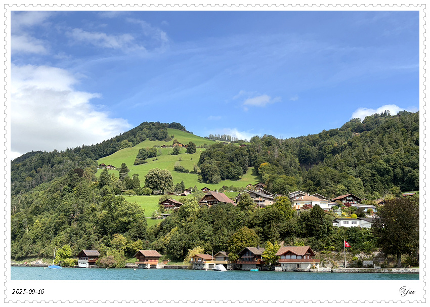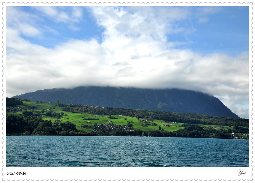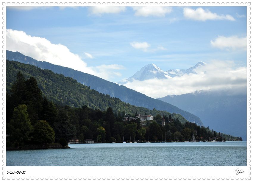 2025年9月16, 文根第三日,多云。 上午在山间步道走了一小段后,乘火车自文根Wengen – Lauterbrunnen- Interlaken West, 转乘11:10am最早的一班轮渡穿过图恩湖Thunersee (Lake Thun)到小镇图恩 Thun,再转火车约2点多到首都伯尔尼Bern,傍晚回程约5点多在图恩Thun下车与瑞士女友相聚。