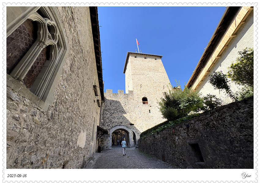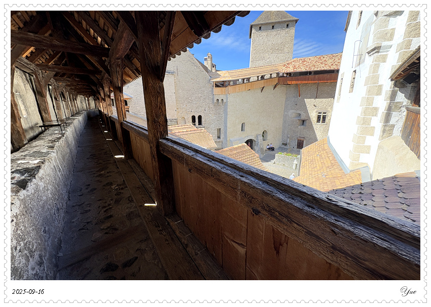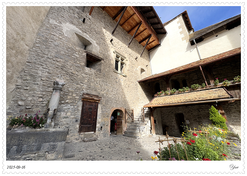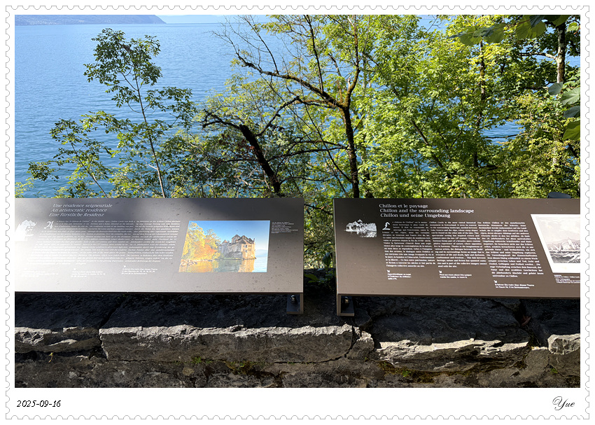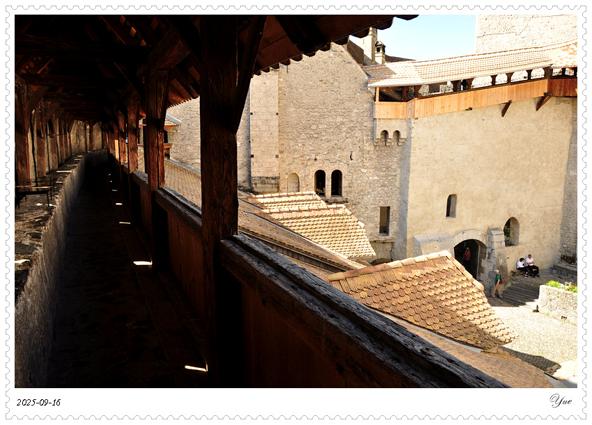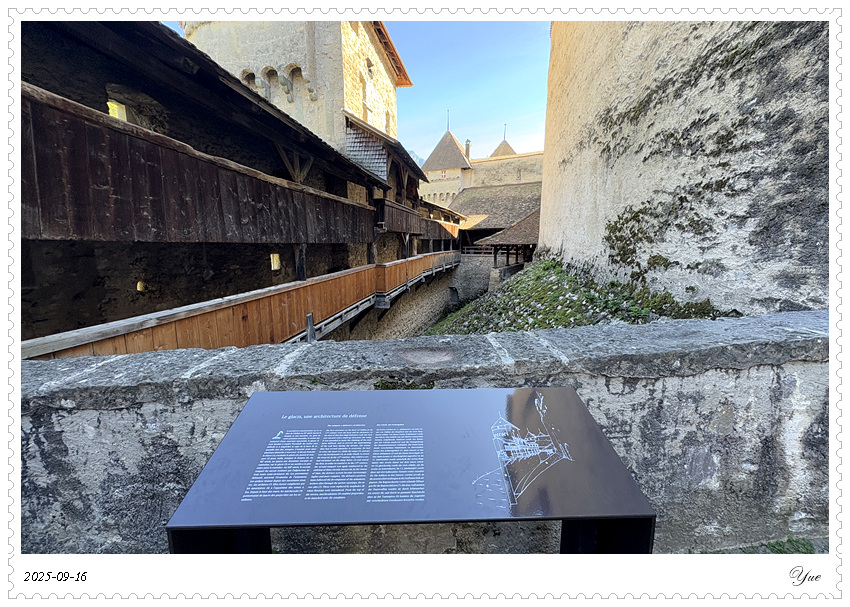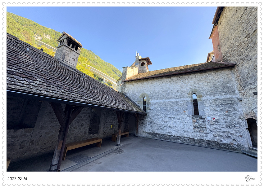 在瑞士, 我们沿途所见的小镇似乎都有一个城堡。日内瓦湖畔的小镇蒙特勒Montreux 也有座城堡, 最著名的那座,被诗人拜伦咏唱成名的,一座中世纪岛屿城堡, 西庸城堡(Chateau de Chillon)。 西庸城堡建在日内瓦湖湖畔的椭圆形岩石岛上, 天然护城河, 环形卫护墙,每个角上也都有圆柱形塔楼,整个城堡包括25座建筑,3个庭院。