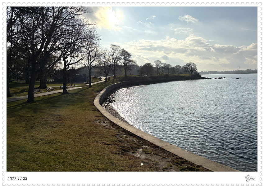 2025年11月22,午后路过海边公园。小雨初歇, 阳光温柔,孩子们小的时候我们经常来这里钓螃蟹,那么多美好的回忆。