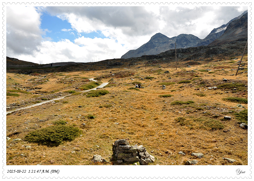这里是行程的亮点之一,也是伯尔尼纳铁路的最高点, 伯尔尼纳山脊站Ospizio Bernina(2253m)。