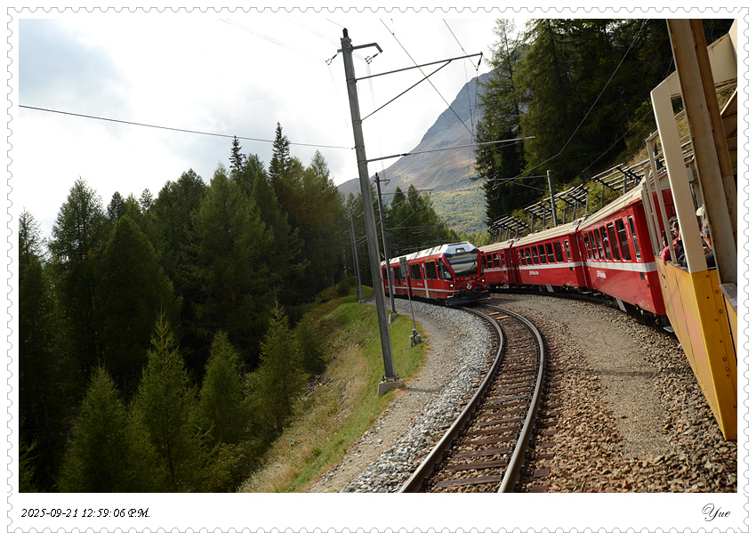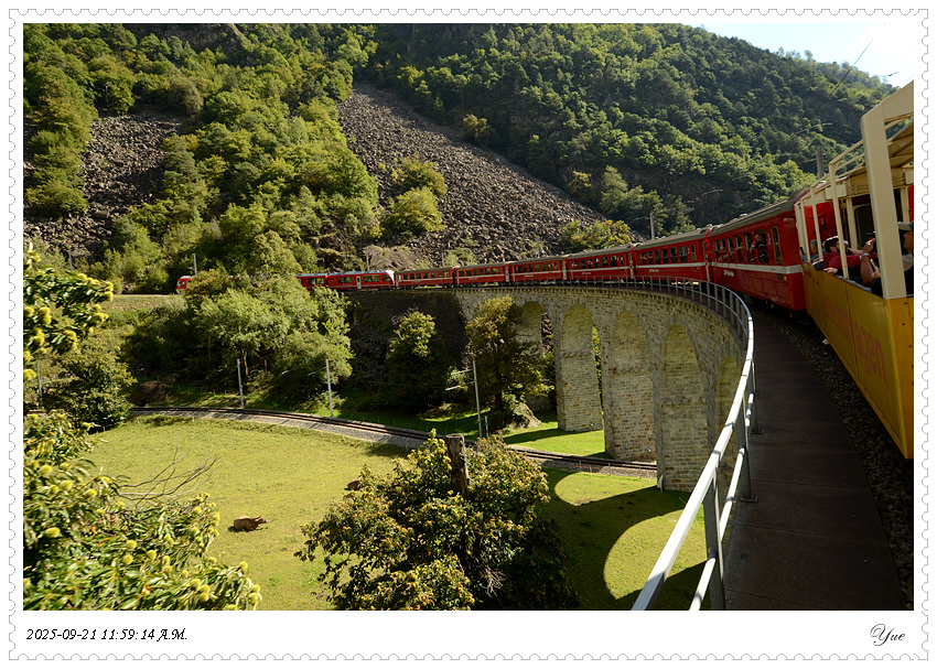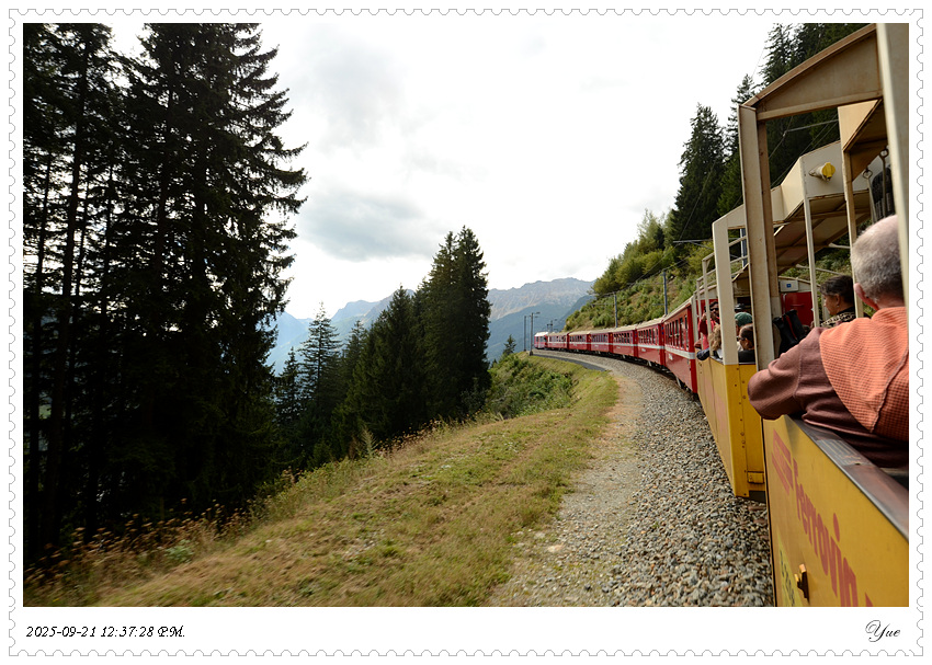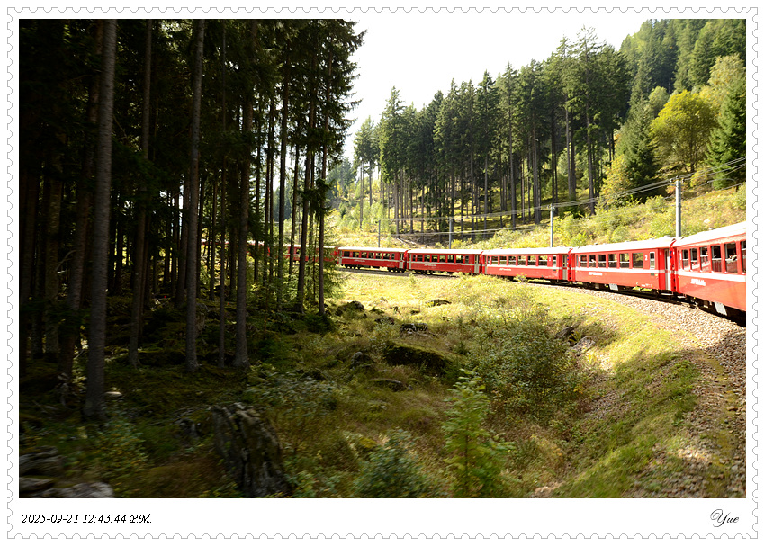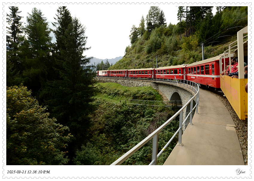 2025年9月21,坐在自Chur 到Tirano (库尔 — 提拉诺)的火车上,俺曾经真的以为就这样了, 可是百转千折断不了, 终于,俺那平静的心又起浪潮,且一浪高过一浪。。。如果有人问究竟是哪里好, 俺只能说, 没坐过它的人不会明了…