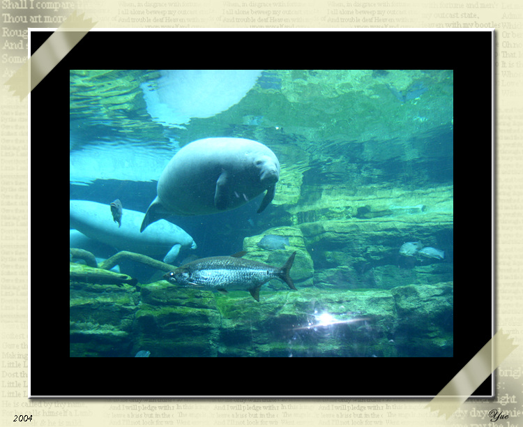 有一些东西, 不必拥有, 不必常在左右, 可是知道它在那里, 与我们同存于这个星球上, 仿佛便是一种慰籍。 MANATEE圆拱馆, 像幽蓝的水底,放着一部介绍MANATEE简短的记录片, 中有个小女孩稚嫩的声音问:MANATEE真的快绝种了吗?